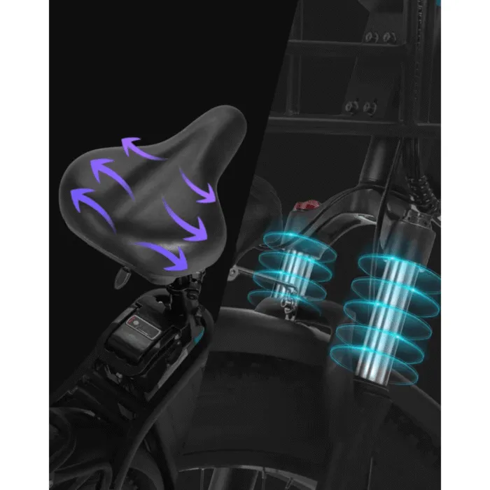 - Fat Tire Stability: Durable fat tires provide superior grip and stability on a variety of surfaces, from rocky mountain paths to urban pavements.