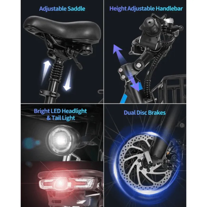 - Enhanced Lighting: Front and rear LED lights offer excellent visibility during night rides, while integrated safety features add peace of mind.