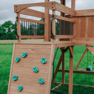Crafted from high-quality, weather-resistant wood, this durable swing set is built to withstand the elements while providing years of safe and exciting play. With a sturdy frame, reinforced structure, and ASTM-certified safety features, parents can feel confident knowing their children are playing on a secure and reliable playset.