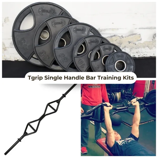 - Training Kit One: Includes the TGrip Bar and a rubber Olympic plate set of 2 each of 2.5 lb, 5 lb, and 10 lb plates.