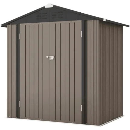 Patiowell 6 ft. W x 4 ft. D Outdoor Storage Brown Metal Shed with Sloping Roof and Double Lockable Door (24.8 sq. ft.)